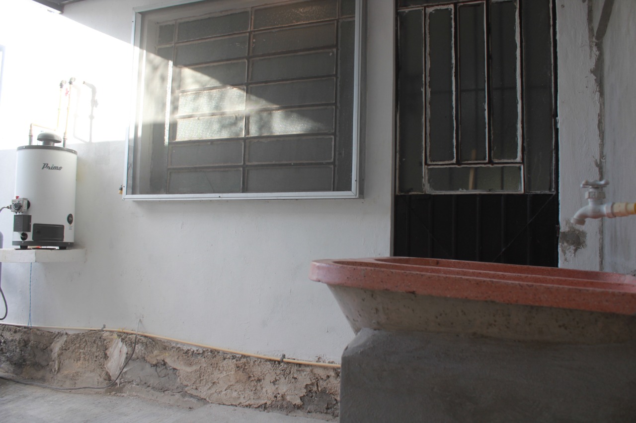 Amplio patio con área de lavado techado.