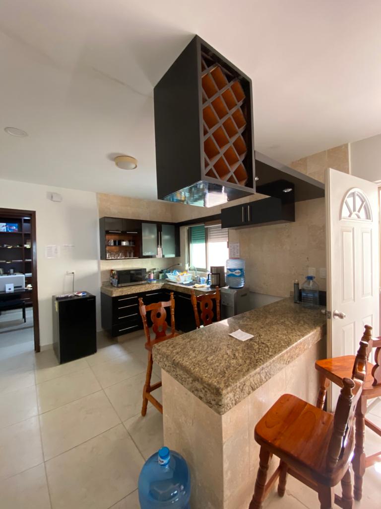 Cocina con alacenas y gavetas (cedro) y ante comedor.