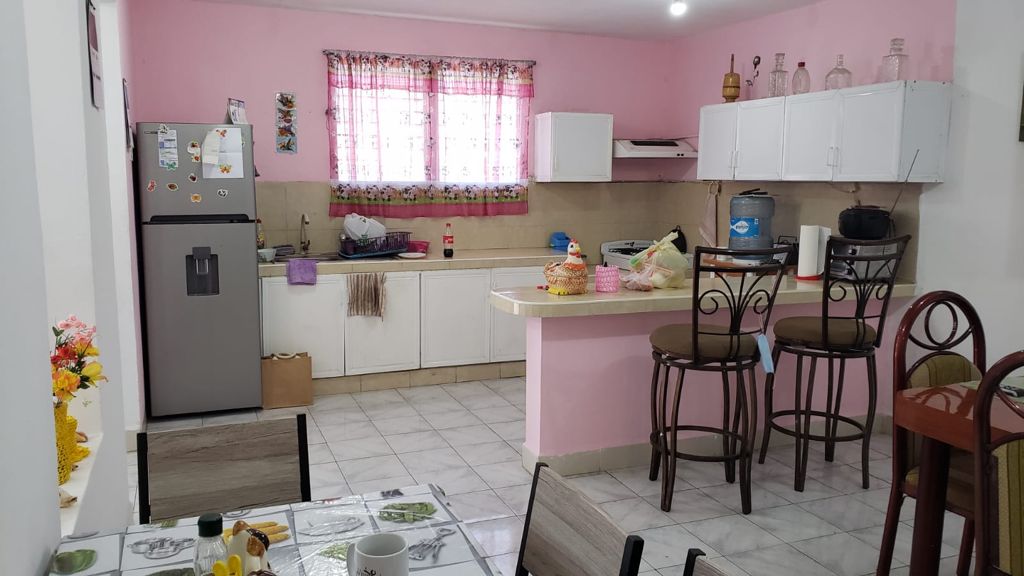 Cocina amplia con barra desayunador. (incluye refrigerador y estufa)