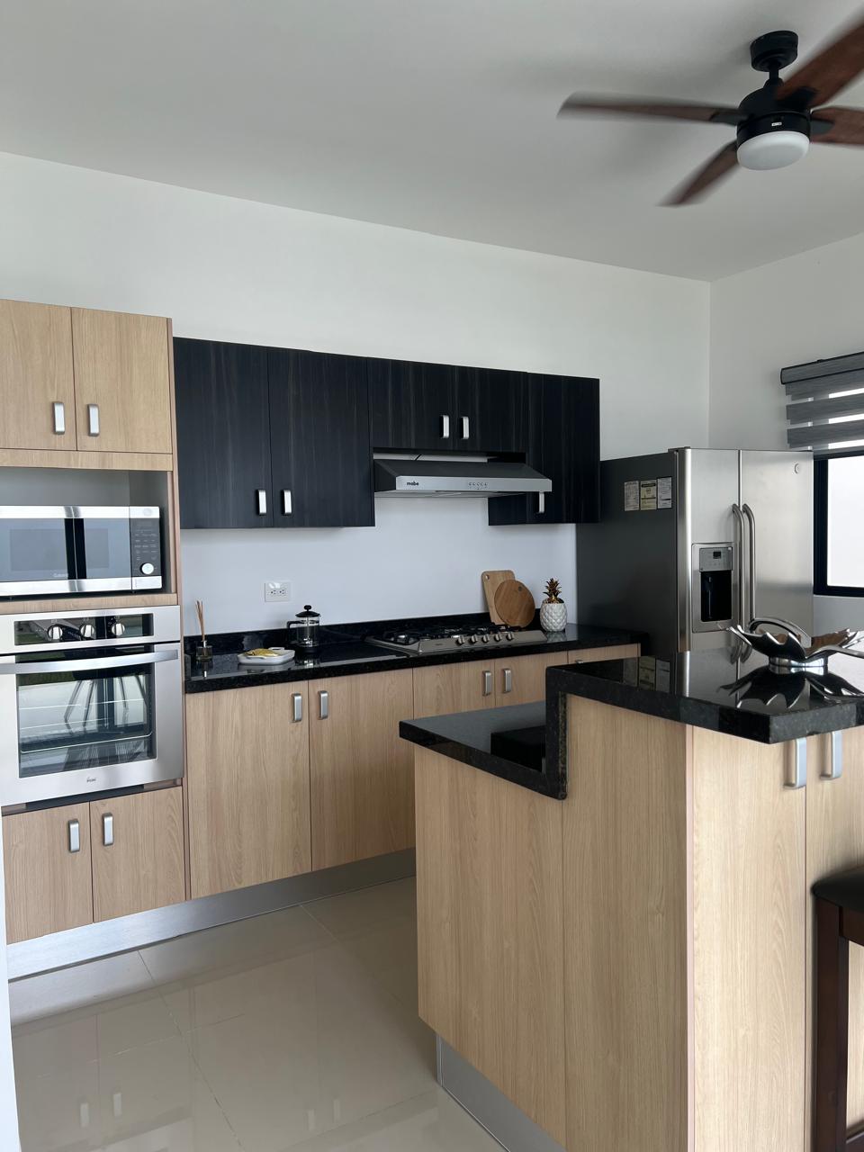 Cocina con gabinetes y meseta de granito.