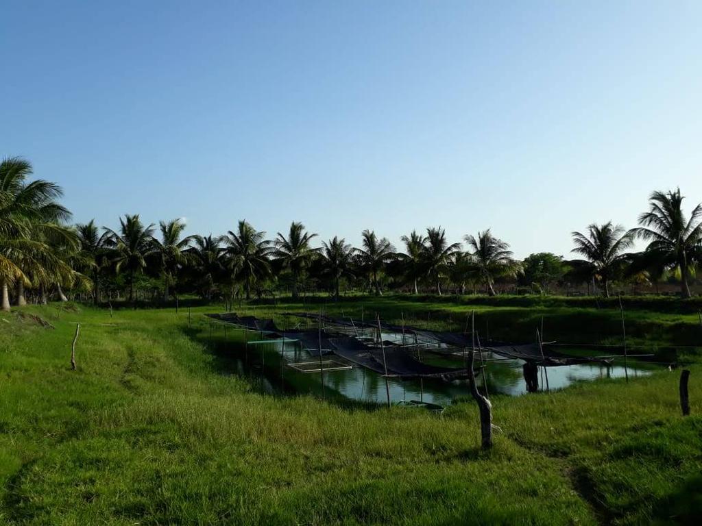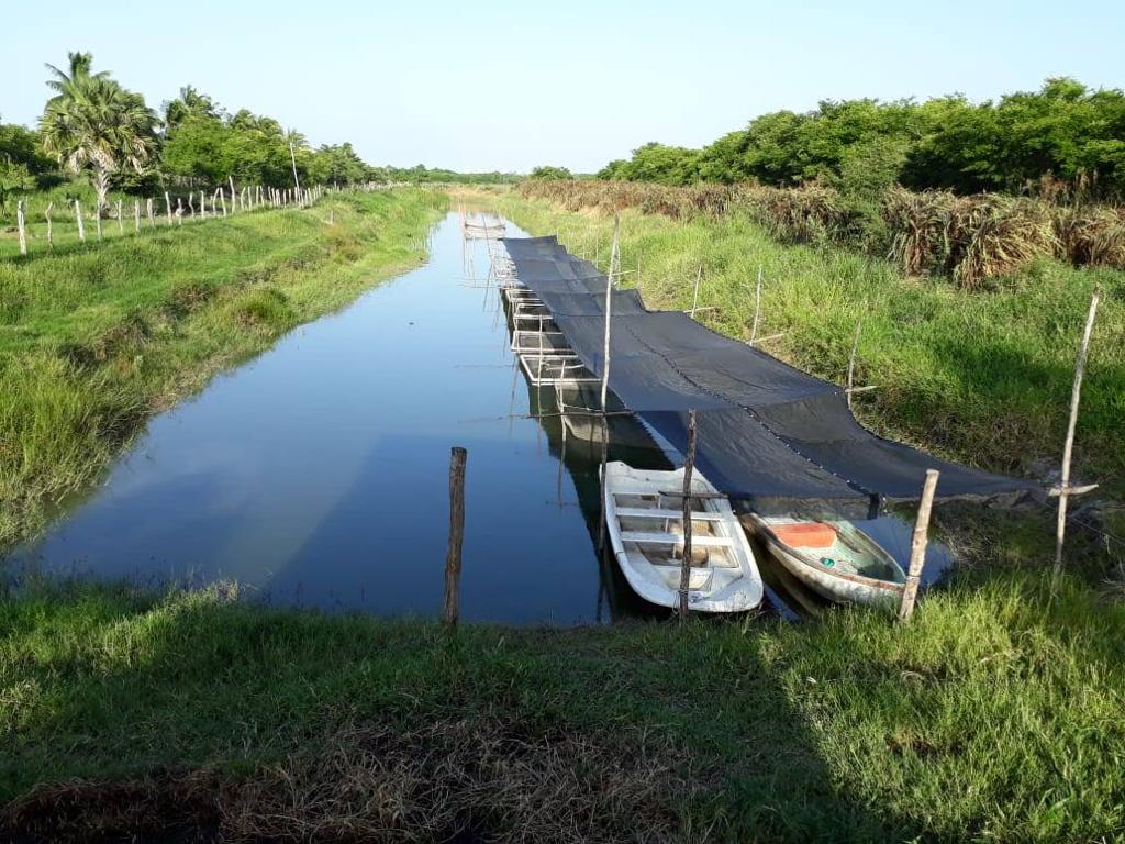 caseta de vigilancia cerca de los dos estanques de manto freático destinados como granja de producción de Tilapia, en proceso de certificación sanitaria.