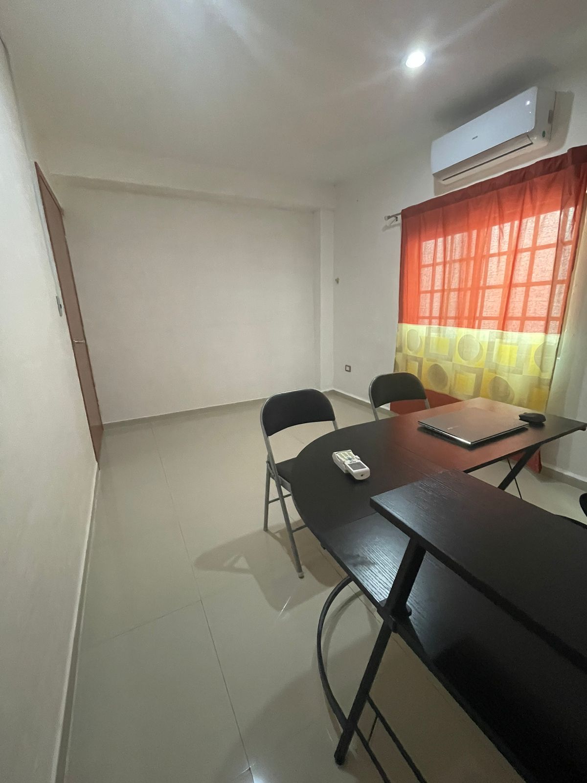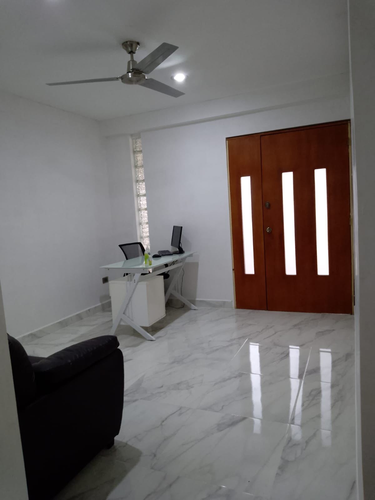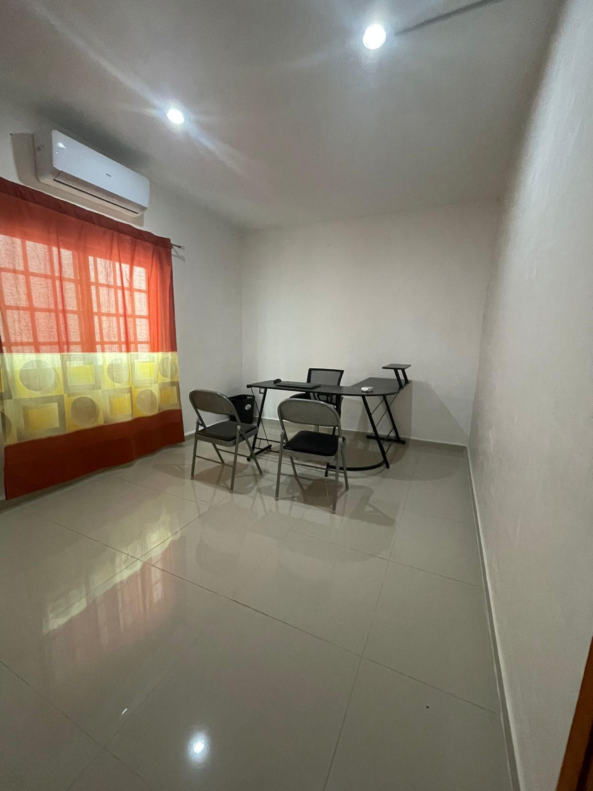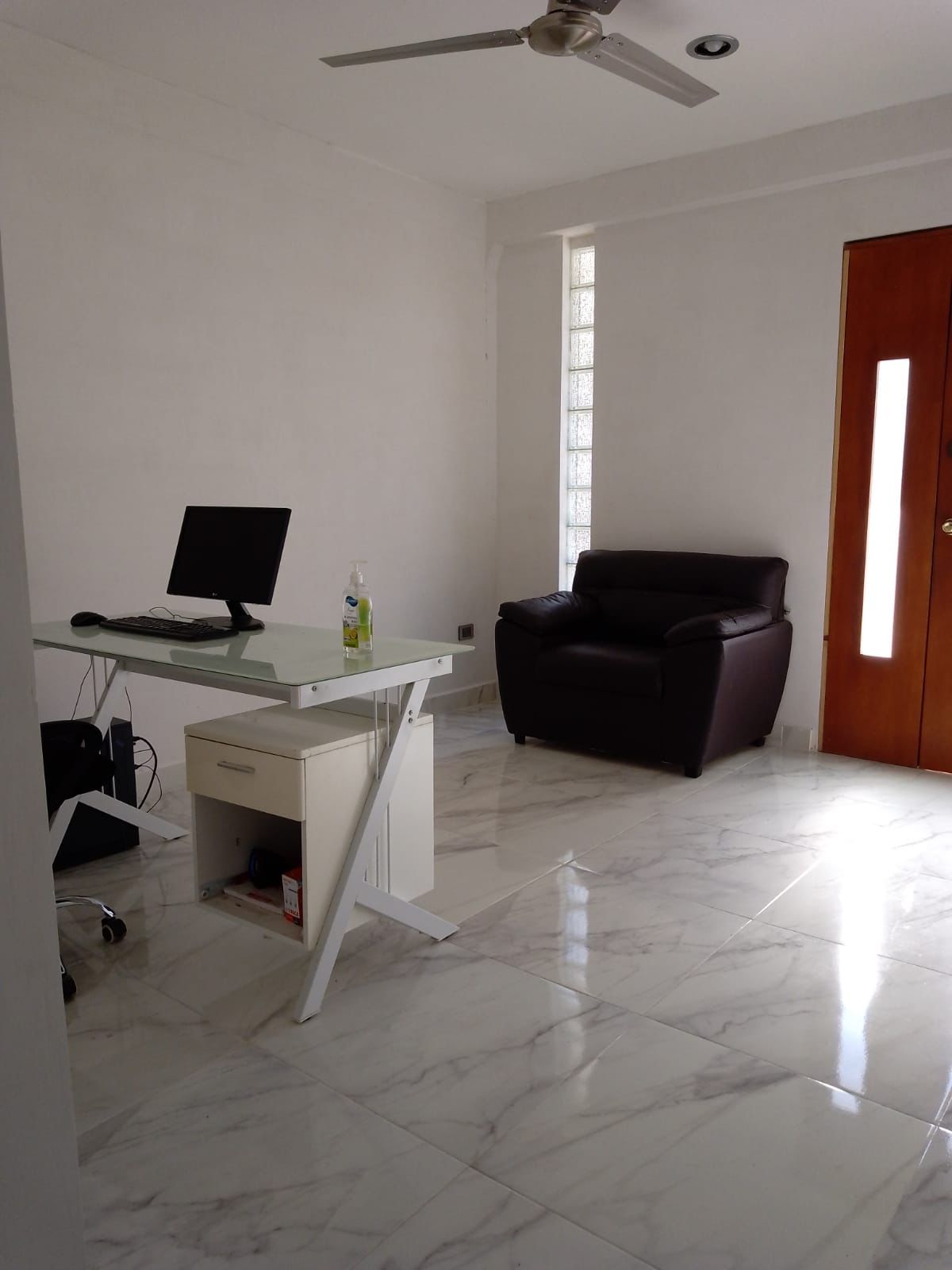 En caso de ser amueblada es 1 escritorio, 1 silla ergonómica y 2 sillas de oficina acolchonadas.