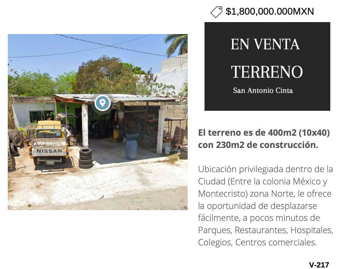 El terreno es de 400m2 (10x40) con 230m2 de construcción.